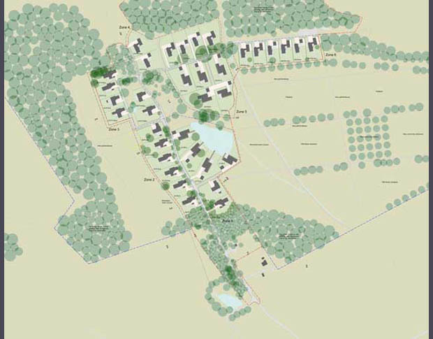 This project was for the design of a new community of 35 detached houses on the grounds of an old hospital on the slopes of the eastern Ochil Hills. The house plots have been arranged on the south facing slope to exploit the views and the natural surroundings adjacent to them, interacting with waterways, fields and woodlands. The individual houses are based on similar design principles whilst allowing flexibility and adaptability by the individual homeowners, and with each positioned on its plot to maximise its relationship with its surroundings, for example, the large south-facing gardens also give access into the parkland beyond.