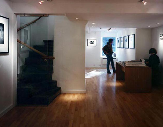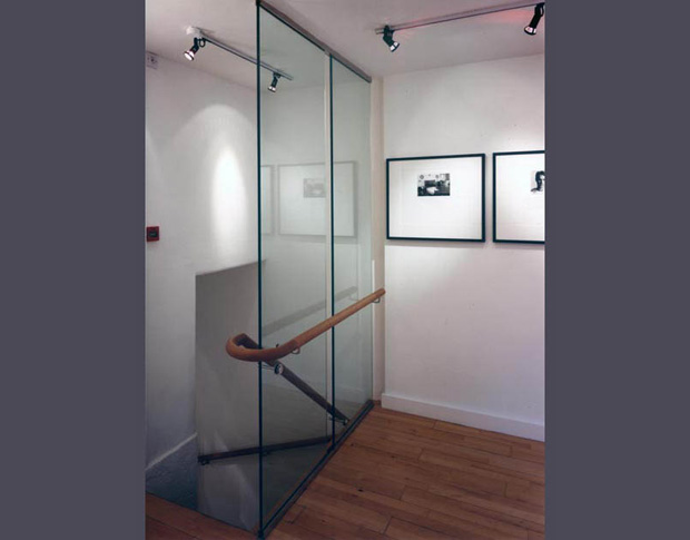 Portfolio Gallery is a small photographic gallery in the lower floors of an Old Town tenement. The existing ground floor was opened up to maximise exhibition space, including the narrow stone spiral stair to the upper level. Where barriers were required, glass screens were utilised to ensure natural light could penetrate the deep plan as far as possible. The simplicity of the materials used within the space: timber, glass & stone allows the photographs their dominance.