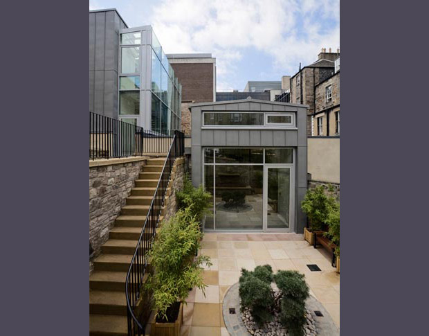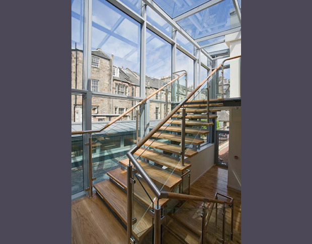 The conversion of existing mews buildings and a vacant Victorian lawyer's office have provided simple, naturally lit, open plan office spaces within the centre of Edinburgh. The alterations included raising the roofs of the mews buildings to give increased ceiling heights; reroofing the Victorian section to bring increased daylight and natural ventilation into the deep plan; linking the different levels between the existing buildings with the addition of a new glazed element containing the vertical circulation; and finally forming a small urban garden.The materials utilised in this project have acknowledged the precedents of the area and building within Edinburgh.